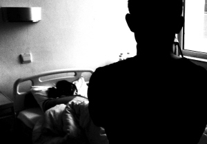 16日下午,平萍蜷缩在一家医院精神专科的病床上,眼睛呆滞地看着窗外流泪……