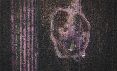 16日上午,不少身穿黑色保安服和航展工作服的工作人员,组成一道道“警戒线”,将坠机点所在的玉米地层层围起。航拍显示,坠机点周围的玉米秆被放倒,总面积达数十平方米。