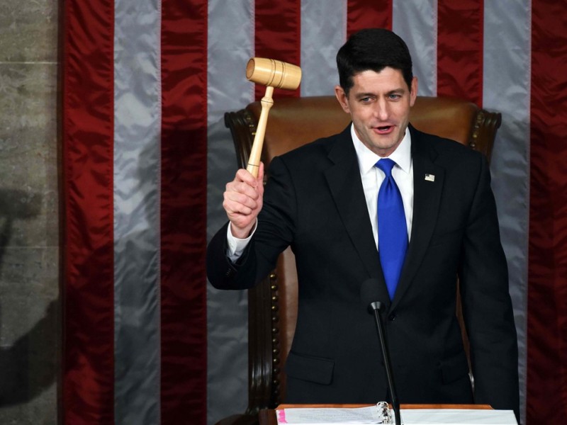 新上任的国会众议院议长瑞恩积极为特朗普当选的合法性、有效性和正当性辩护(图源:新华社)