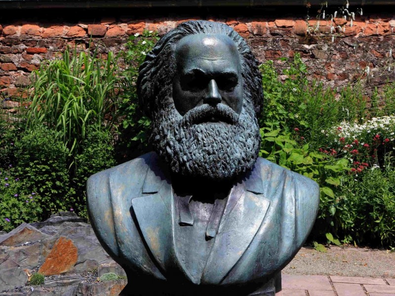 位于德国特里尔马克思故居纪念馆后院花园的马克思半身塑像(图源:新华社)