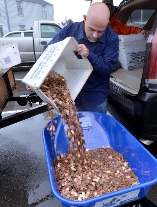 据英国每日电讯报报道,美国弗吉尼亚州一名商人因对车管所不满,一气之下出狠招,将30万枚1美分硬币倒进5辆工地独轮推车内,推进车管所缴交3000美元税款,工作人员花了至少7小时才点算完毕。