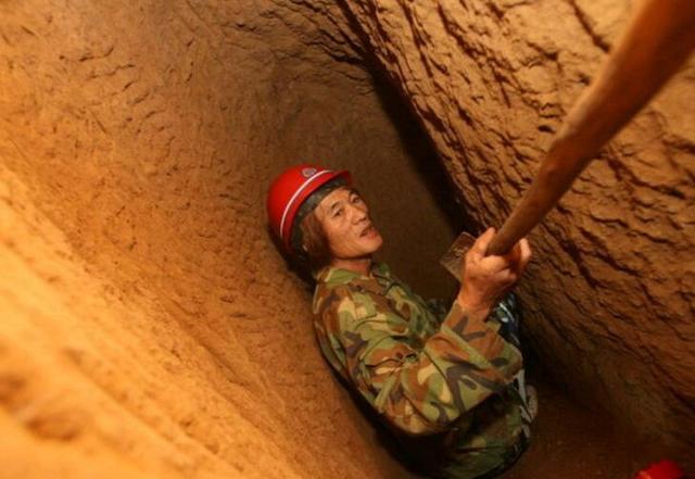 图中是正在施工中的老人家,每天他都重复着这一项枯燥的工作,不畏辛劳,只为了能给自己家人一个完美的安身场所。据说这位老人家挖的地道非常结实,还能抗震。