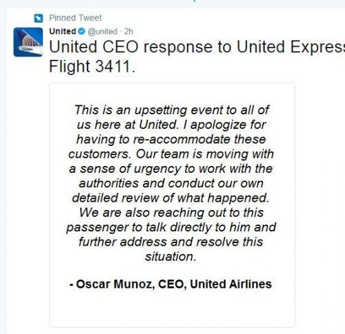 美联航发表道歉声明