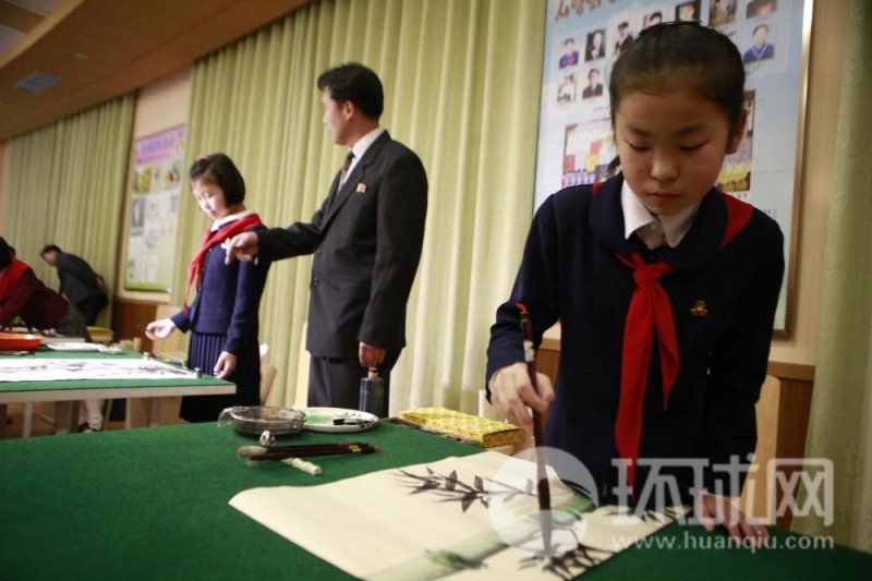 《环球时报》记者一行人随后参观了体操小组、民族乐器小组、声乐小组等各种课堂,以及朝鲜孩子们在国际上获奖的作品展览。每个教室都挂着朝鲜领导人的“指导语录”,比如跳舞班的是:舞蹈演员需要多练基础动作——金正日。在声乐班,记者一行人听到了歌词内容为“我们想当世界上最强大的军队,总书记的军队”“我从学校回来,妈妈问我得几分,是5分(朝鲜学生的满分)”等歌曲,在作品展览区,《环球时报》记者看到了孩子打篮球、梦想乘坐火箭、“我们想当世界上最强大的军队”等画作。