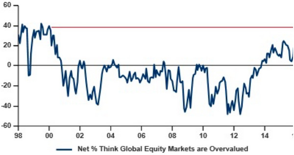 图注:美银美林调查国际基金认为全球股市估值过高比例