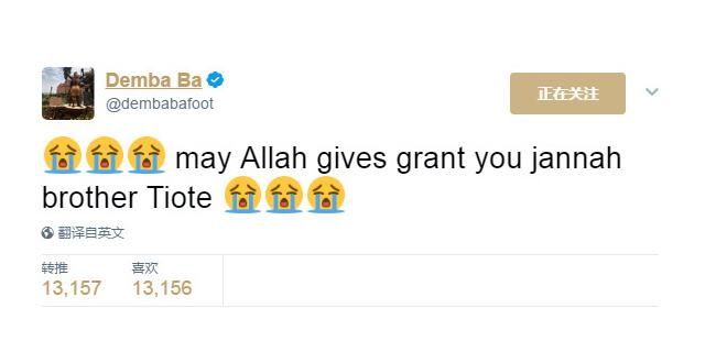不管是足球还是其他运动,时常有运动员训练中猝死的情况发生,但我们希望俱乐部加强对球员身体状况的跟踪,减少此类事件的发生。租借的申花外援登巴巴曾在纽卡和蒂奥特做过队友,登巴巴也及时发文悼念这位前队友:愿真主赐予你天堂!