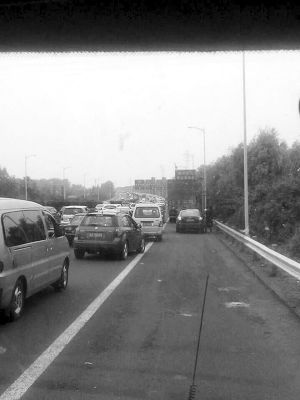 9点45分许,救护车一上高速,就看到绵延堵车20多公里,应急车道上也停了许多车辆,救护车再也不能前行。面对应急车道上的车辆,无奈之下,急救人员开始频繁地重复喊话:请大家让一让,把应急通道让出来。