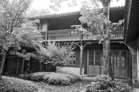 整个建筑,坐北朝南,由前厅、大厅、正楼、后屋组成。前厅和大厅为面阔三间二弄的二层楼房。踏过空荡荡的大厅,可见一个不宽敞却温馨的小院子。一株高大的乔木用繁茂的枝叶掩起了正楼的面貌。初秋时节,落叶悄然铺满院子。