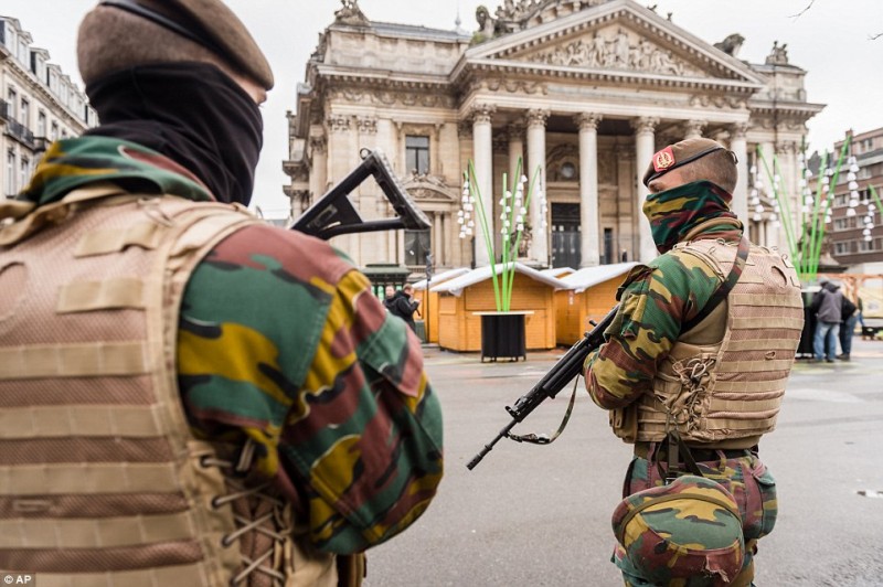 布鲁塞尔中心在周日晚上往往是人潮涌动,而现在已经是事实上荒芜的,只有军警在街上巡逻。