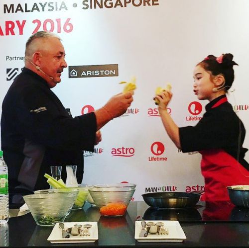 作为这样一名烹饪奇才,孔令贞登上了美国FYI电视台的厨艺竞赛节目“决胜大厨”(Man Vs. Child: Chef Showdown)的舞台。在这个节目中,5名厨师少年挑战知名餐厅大厨,而孔令贞是其中最小的那个。近期,他们去往新加坡、香港等地进行节目宣传。