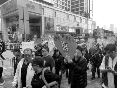 昨天,香港撑警大联盟发起游行,支持香港警方执法,并要求政府严惩参与旺角暴乱的人士。