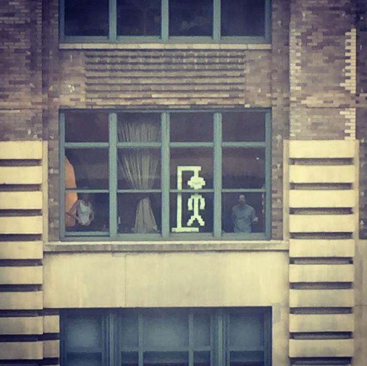 他用便利贴在窗户上贴了一个“HI”,当时就是单纯为了打发时间
