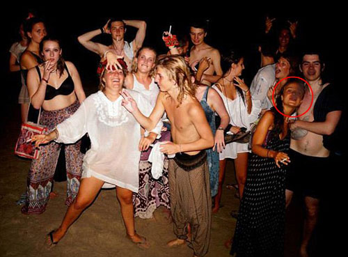媒体在社群网站上挖到阿梅莉亚的旅游照片,她在印度与友人在沙滩开派对,其中一张照片她手持香菸,头枕在男性友人胸口吞云吐雾,另一张照片则是她弯下腰时露出半个胸部,险些走光。她在希腊穿着比基尼的泳衣照也曝光,同样也是手持香菸。
