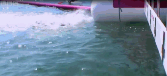 在终点线前法国选手奥莱利•穆勒将对手按下水