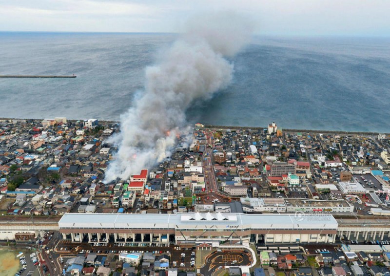当地时间2016年12月22日,日本新潟县鱼川市,当地一家餐馆突然起火,结果因强风天气,火势迅速蔓延,导致约140栋房屋着火。视觉中国