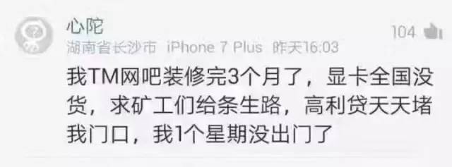 “各位矿工大佬行行好”、“炒价就服矿工”、“显卡疯长是人性的缺失还是矿工的盲目”、玩家们调侃、抱怨之声,充斥网络。